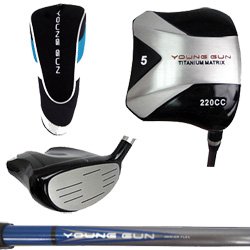 All new square 5 Woods from Young Gun for juniors. 220cc titanium head with a high modulus graphite shaft. GREEN 38" length, fits height range 54"-61". Matching headcover included. Club comes with all-weather grip. Full manufacturer warranty covers breakage or defects for one year. Brand new. FREE MATCHING HEAD COVER INCLUDED!