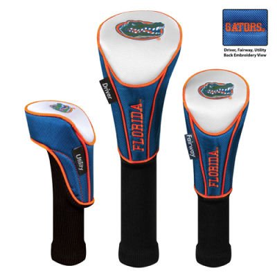 This set of three headcovers, constructed of durable nylon, features expandable socks that provide maximum shaft protection. Three different sizes ensure a proper fit on your clubs, and the #1 headcover is designed to fit up to a 460cc driver. Embroidered with up to three NCAA Florida Gators trademarks on each headcover. Embroidered numbering system of Driver, Fairway & Utility.